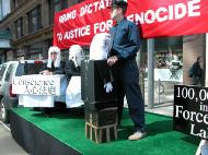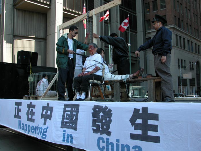 ![]() 迫害展示令路人震惊 | ![]() 路人们注目展示出的酷刑 |