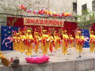 在集会上,法轮功学员介绍说,“这是一个特殊而神圣的日子,十二年前我们伟大的师尊以无比慈悲的胸怀,将法轮大法洪传于世。修者日众,道德回升,身心康健。短短的十二年间,真善忍的光辉撒遍了中国的大江南北以及世界各地60多个国家和地区,有不同的种族、上亿的人群在修炼。”法轮功学员还表示,“我们愿把对法轮大法的感激化作对普天下善良人们的祝福。
