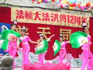 傣族舞的欢快表达了得法人的喜悦心情。表演者之一茜茜向观众介绍了她的父母因炼法轮功在中国正受着迫害,她希望她们的舞蹈能给更多的人带来快乐,也希望能给中国的法轮功学员及她的父母以鼓励。茜茜的丈夫Joel Chipkar先生也是一名法轮功修炼者,曾将中国驻多伦多副总领事以“诽谤罪”送上法庭,成功判定被告诽谤法轮功罪名成立、负担诉讼费用10,000加元并罚款1000加元。
