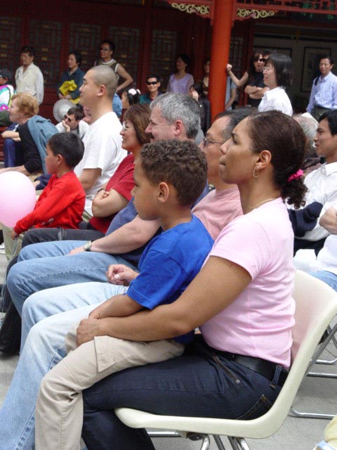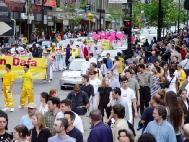 部分观众是看到前一天当地法文报纸《蒙特利尔日报》关于庆祝活动的预告专程赶来的。一位专业摄影师从头至尾观看了全部演出和游行,他说这是蒙特利尔夏天里最好的活动,并详细询问了修炼法轮功的有关问题。他问一名学员:“你们这么好,我能加入吗?”得知法轮功修炼完全是自由的、免费的,特别感动,表示非常希望成为修炼者。交谈中,他一直看着学员佩带的“真善忍“(法文)徽章,在学员表示可以送给他时,他说:“这么珍贵的东西,我不能要。”当学员告诉他说自己还有另一枚时,这位摄影师立即把“真善忍”徽章戴在胸前。