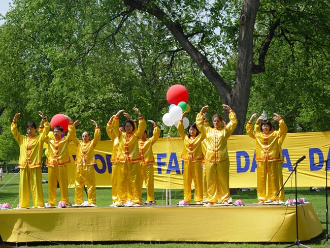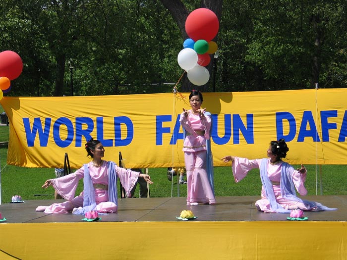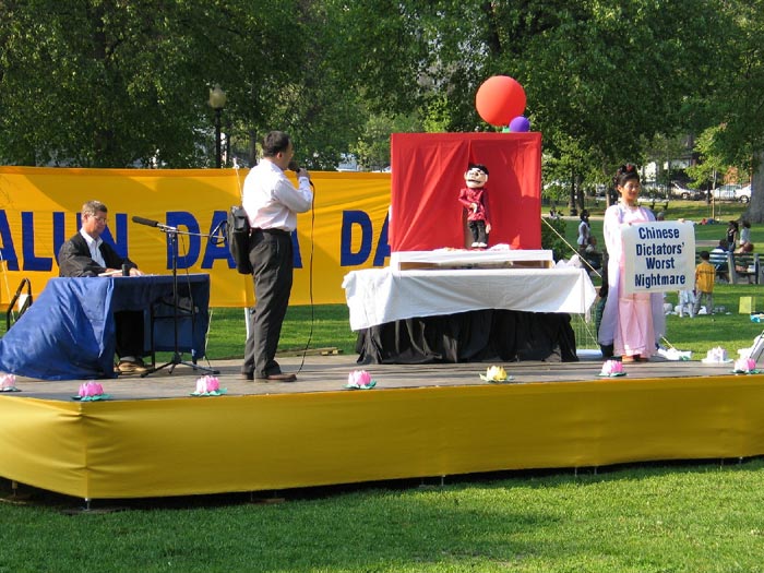 2004年:法轮大法洪传十二周年。5月15日在波士顿大花园及中国城举行了盛大的庆祝活动,庆祝演出分为“大法洪传、全球褒扬、邪恶迫害、讲清真象和普天同庆”共五部分,再现历史,预示“普天同庆”的光明未来。