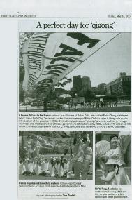 【明慧网2004年5月19日】费城调查者报5月14日以图片报道了费城法轮功学员庆祝世界法轮大法日的活动。报道说,当地的法轮大法(也称法轮功)学员在庆祝世界法轮大法日,横幅在微风中飘扬。昨天是法轮大法创始人李洪志先生于1992年将法轮功修炼公诸于世的周年日。修炼,或称气功,是通过炼功和打坐来促進身心健康。1999年,中国政府估计有七千万到一亿中国公民修炼。法轮功在世界60多个国家都有人炼。