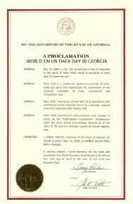 鉴此,我,乔治亚州的州长桑尼-普渡,特此宣布2004年5月13日为乔治亚州的世界法轮大法日。