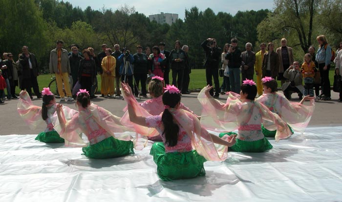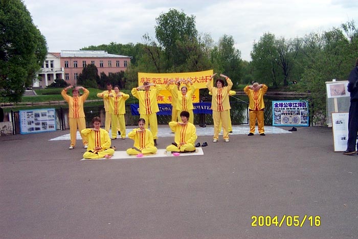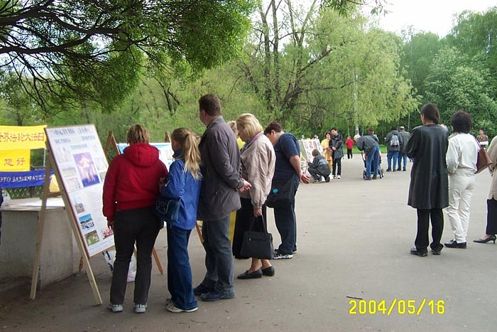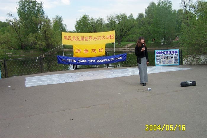 【明慧网2004年5月21日】在这天上、人间同祝、同庆第五届世界法轮大法日暨师尊洪传大法十二周年的节日里,莫斯科大法弟子5月16日在国家森林公园举行了庆祝活动。