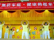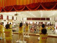 ![]() 陈校长分享学炼法轮功对身体的帮助 | ![]() 车港村法轮功学员在台上演练第二套功法 |