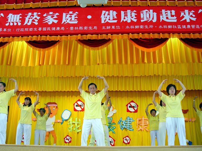 主办单位云林县水林乡卫生所的蔡家玲小姐表示,为鼓励民众在休闲时多参与社区活动,让人人都有健康的身体,卫生所在资源并不充裕的状况下于2000年7月成立这个「水林乡社区健康营造中心」,开始的时候倍感艰难,幸好有热心的社区民众义务帮忙推动才得以有今天的成绩。中心成立后第一个正式推动的活动是车港村的法轮功炼功活动。起因是有卫生所同仁推荐邻近的灿林国小炼功点每天有不少学员炼功,觉得「法轮功」一定很好,经联系炼功点的顶湖国小陈素珠校长又获得热情回应,答应义务到5、6公里远的车港村指导当地村民炼功。于是这个被选为健康营造「示范村」的车港村,就以「法轮功」为该村健康营造的主要项目。