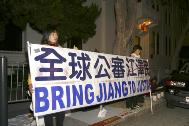 为了寻求道义支持和法律的公正,26日晚,部分旧金山湾区的法轮功学员下班后,前往中国驻旧金山总领馆前请愿。