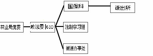如果被劫持到学习班的人说假话了、会骂人了、打人、抽烟、喝酒了,那么610歹徒就认为达到“学习班”的目地了。否则不是判刑就是劳教。为达此目地,苇河林业局已形成一套完整的迫害大法的系统,如下图所示: