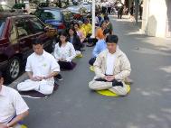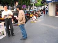 学员们在大使馆请愿期间,好些人主动走过来向学员们询问。他们有的惊讶于这场迫害的荒诞,有的甚至希望学炼法轮功。