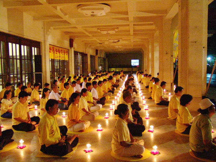 法会期间,还播放了诉江大审判录影,放眼了解法轮大法在全世界的洪传。心得交流后,大家集体炼功,发正念,点百枝蜡烛,悼念在中国受迫害致死的法轮功学员。