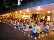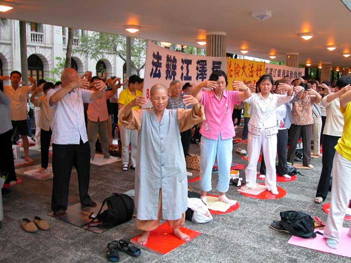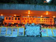在同日上午,一批学员也在中联办外进行静坐请愿,要求法办镇压法轮功的元凶江泽民。
