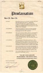 鉴于,法轮大法学员们在最恶劣的环境下致力于用和平方式解决矛盾,提倡法制并捍卫基本人权,鼓励人们加强捍卫人权的共同决心;