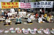 路透社图片报导:法轮功学员在温家宝访问期间静坐请愿