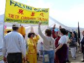 一位男士向学员要了很多相关资料,他知道在中国发生的对法轮功的残酷镇压。他对这么祥和的功法遭迫害感到不解和同情。学员向他介绍了镇压前法轮功在中国的洪传,如何给上亿人带来身心的升华,然而江氏出于嫉妒和私利,违背广大民众和其他政府官员的意愿,用强权发动了这场对信仰“真善忍”的善良民众的血腥迫害,迄今已造成至少900多人被迫害致死。听着学员的介绍,这位先生频频点头并对法轮功学员们和平的反迫害努力表示赞同。