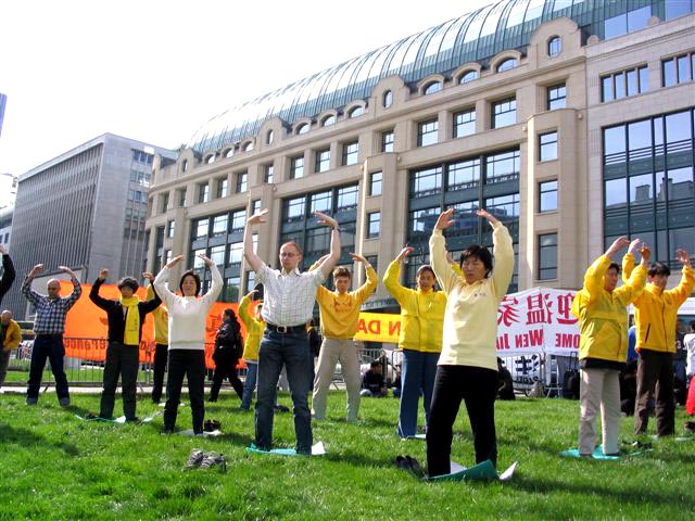 两天来比利时的警察充分信任法轮功学员,他们明确表示,他们了解法轮功学员一直是非常平和的,法轮功是这次唯一得到活动许可的团体,他们在这里是保护法轮功学员们免受坏人的侵害。