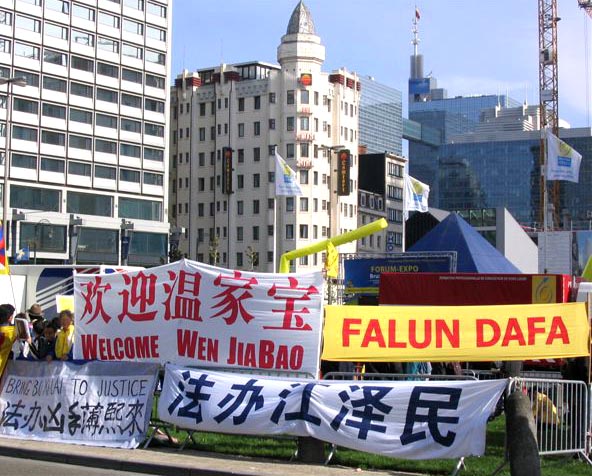 鉴于中国总理温家宝访问欧盟及参加欧盟中国贸易论坛,由一位欧洲议会议员及两位比利时参议员与法轮功学员联合签署的声明表示: