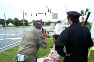 Brunswick 的警察局警长来到法轮功学员炼功的地方,与学员交谈,希望更深入的了解法轮功在中国受迫害的情况。听学员讲解时,警长一直点头,听完之后,马上给警察局打电话让其他警察来看。走的时候,一再说“谢谢”。