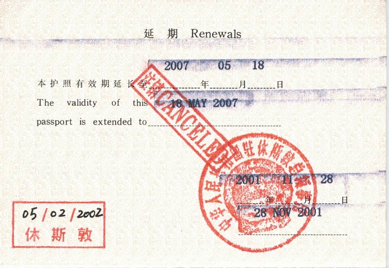 2001年11月27日,我将所有护照延期所需资料用特快专递寄给了休斯顿总领事馆。按照护照上的公章,总领事馆于第二天28日即收到了我的材料并立即盖章予以延期。但是11月29日中午,我收到了一位自称姓杨的领馆官员的电话查询我修炼法轮功的情况。在电话中,他重复了江氏集团对法轮功的镇压政策并要我放弃法轮功。我拒绝了。我向他介绍了自己修炼法轮功后身心受益的事实,并指出镇压完全是江××的一意孤行,希望他能正确对待法轮功。谈话進行了大约40分钟,最后他说对我的情况有了了解。此后,我的护照便杳无音信。
