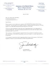 美国联邦众议员杰瑞.维勒(Jerry Weller)的贺信。