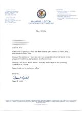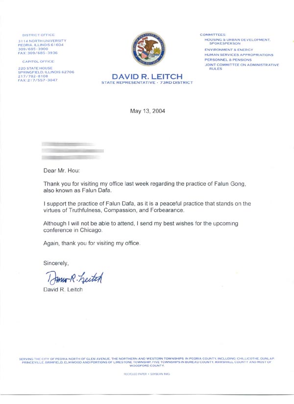 伊州众议员大为.雷池(David R. Leitch) 的贺信。