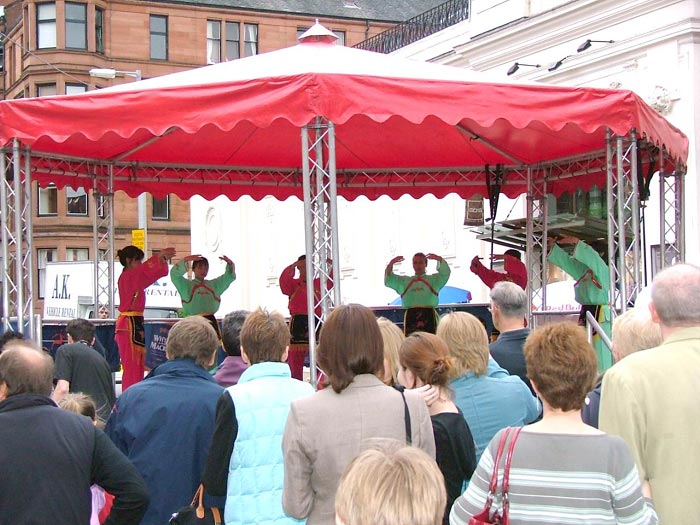 参加这次活动的学员来自苏格兰、英格兰和威尔士各地,从不同的城市特意赶来,向苏格兰人民洪扬法轮大法,揭露迫害,讲清真象。尽管没有什么特别的安排和分工,但大家协调的很好,发传单、功法表演、照看展位、解答问题,一切都進行的有条不紊。