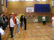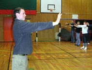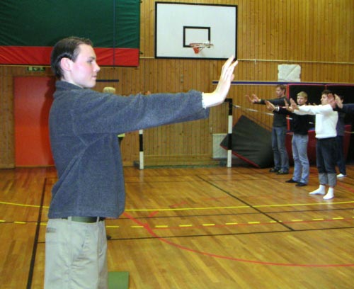 学生们兴致勃勃的学炼了第一套功法。学校的网页上报道了这次活动,文章中写道:“他们(法轮功学员)展示了功法。我们在下课时或者休息时都可以自己做。功法既可以帮助恢复体力,又可以使人心态平和。”