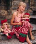 图四,女孩脚前边的草莓包,这两面上面都是用线绣的,完成后是菱形块,有凸凹感。要求每条线不能有一点弯、针脚均匀。