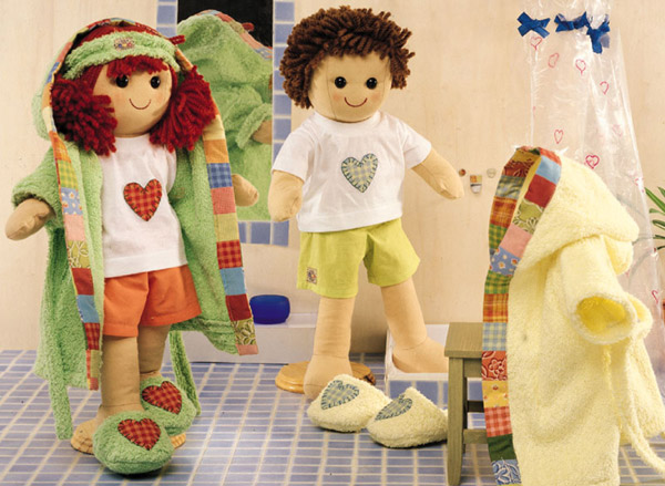 包装程序:穿裤子(要把裤子拉好,不能露出娃娃的腿)、穿鞋(鞋的上面是白色的袜子),把袜子口向下翻两圈,穿裙子,带头花(要求绕两圈),剪线头,整理辫子,把穿好衣服的娃娃放在白颜色的布袋上,在娃娃的臀部下放上干燥剂,然后再套上透明塑料袋,再把纸盒折好,把这个包装完的娃娃放在纸盒里。这样才算完工。一个人的工作量是120个。