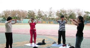 上完法轮功九天课程后,我深知这是万年不遇的好功法,即想在政府单位推展法轮功,经洽其他法轮功学员后表示,他愿意来国贸局教功。我们利用连续二天中午的时间学炼功法。由于4.25事件,民众都很好奇什么是「法轮功」,当我一张贴海报及广播后,有约百人拥入大礼堂学功,其中有不少长官,如副局长,执行秘书等非常认同法轮功。