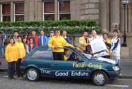 “我在此的原因是法轮功将要做一次环绕全苏格兰的汽车之旅,并将前往许多不同的城市,我非常非常高兴来支持他们针对中国言论自由为目地的活动。很清楚的,在苏格兰,他们可以随其所愿的修炼,任何人都可以在苏格兰修炼这项功法,而且我相信这个功法会遍及世界各地,特别是中国。”
