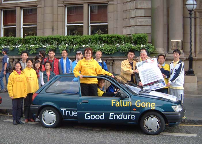 学员们在爱丁堡市中心设置了法轮大法信息展位,告知人们正发生在中国的群体灭绝罪行的真实情况。数百位民众在主张江××要为迫害夺走960条人命负责的请愿书上签名。(据中国官方文件的数据——实际被迫害致死的人数达数千人。)