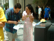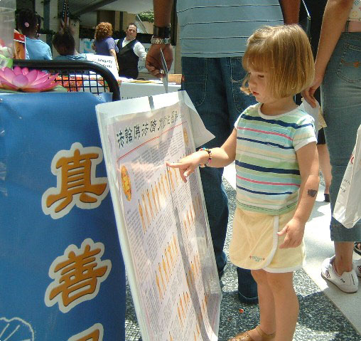 对于征集签名,学员们并没有做太多的努力,只是把征签表端端正正的放在桌面上。一些人士看到迫害展板,毫不犹豫的签下了自己的名字,呼吁国会议员谴责这场无理且残酷的迫害。