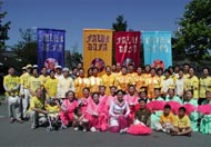 【明慧网2004年6月21日】二零零四年六月十九日,加拿大温哥华法轮功学员参加了兰里市的游行。兰里市距离温哥华市有一小时的车程。学员们觉得城市游行是一个很好的洪法讲真象机会,于是大家决定积极参与。游行中,学员们优雅的舞蹈和功法演示得到阵阵掌声。一位西人老太太说:“多么美啊,我了解一些法轮功的真象,中共(江氏集团)的害怕是多么荒谬啊。”