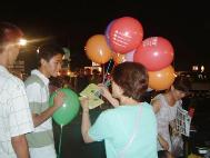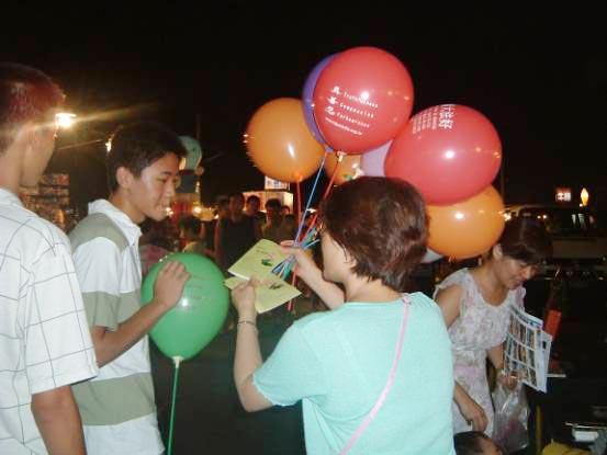 一对带着小婴孩来逛夜市的王老师夫妇表示:他们夫妻两人的学校都有老师学炼法轮功,他们发现法轮功学员除了身体好外,个个心性高、任劳任怨且和同事相处溶洽,所以他们夫妻两人已报名了云林县暑期的法轮功教师研习班,也想成为身心健康的法轮功学员。