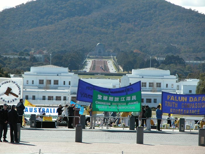 6月21日,约2百多法轮功学员在堪培拉国会前庆祝澳洲法轮大法日并演示公审江氏及游行。