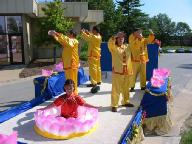 法轮功学员获得游行最佳花车奖 |  装饰精美的花车 |  孩子们学做莲花 |