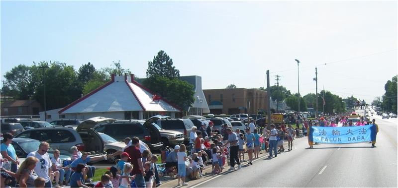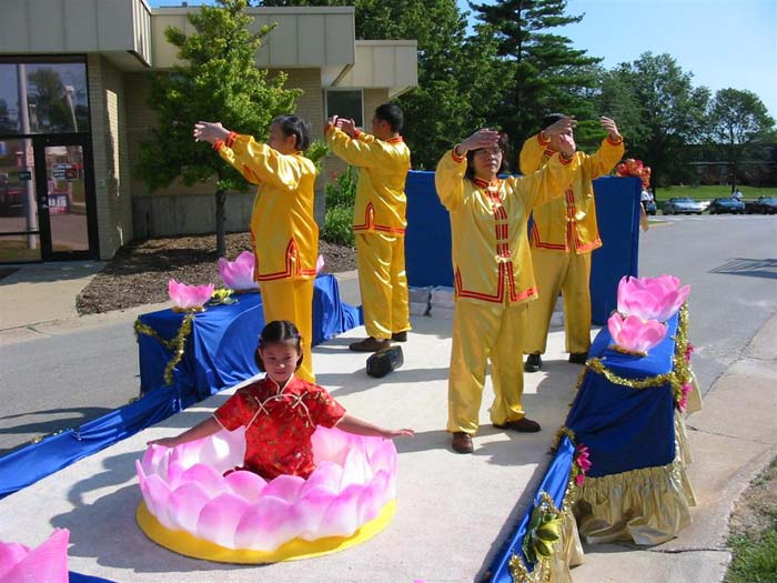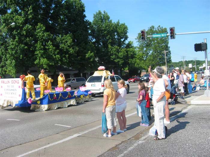【明慧网2004年6月28日】拥有三万一千多人口的鲍尔温(Ballwin)市位于圣路易的西南部。一年一度的鲍尔温日庆祝游行于2004年6月26日上午在市中心举行。今年是圣路易法轮功学员首次参加鲍尔温日游行,倍受观众瞩目,法轮功学员的游行花车荣获“鲍尔温日游行最佳花车奖”。