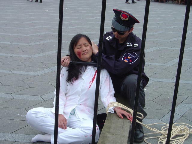 这次的“反酷刑展”由学员亲身展示发生在中国的对法轮功学员進行的酷刑:插竹签,烙刑和吊打,以及大量的图片与说明。与此同时,部份学员進行功法演示,与迫害的场景形成了鲜明对比。现场配有学员用英文,丹麦文通过麦克风向群众介绍发生在中国的这场五年之久的迫害。来自瑞典的学员弹起了吉他,在铜管的伴奏下用歌声呼吁人们一起来结束这场迫害。