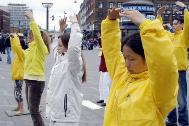 第二天,丹麦大报《政治报》报道了记者在现场对丹麦西人学员的采访,文章不仅介绍了发生在中国的人权迫害,还详尽的介绍了法轮大法的修炼内容及大法网站。一位职业摄影师来到炼功点,交给学员们一张光碟,是他昨天为反酷刑活动所照的照片。