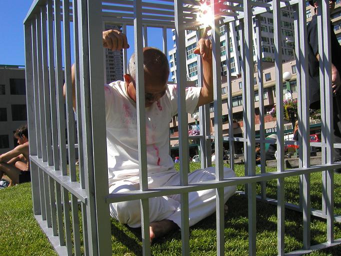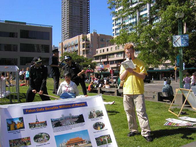 今年的“联合国支持酷刑受害者日”正值周末。西雅图市中心Victor Steinbrueck公园迎来了一幕在西方自由社会中难以见到的场景-华盛顿州的法轮功学员在这里举办了反酷刑展。学员们以模拟表演的形式揭露正在中国大陆持续发生的对法轮功学员的残酷迫害。