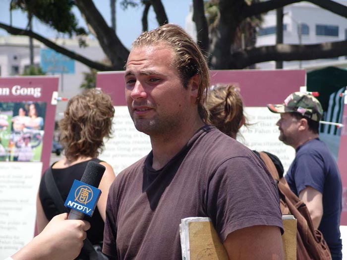 中国大陆法轮功学员遭受酷刑迫害的场景强烈的震撼着现场观众,有人默默的站着,凝望着学员扮演的遍体鳞伤的受害者久久没有移步;有人默默的流着泪,不断的用手拭去泪花;有人找学员提问、要真象材料,急切的想知道究竟;也有人立即在要求中国停止迫害法轮功的信上签下姓名。