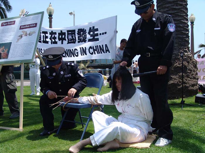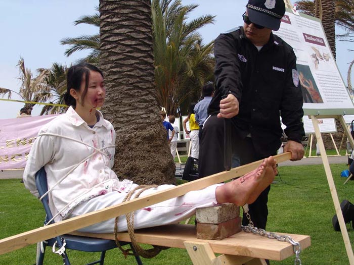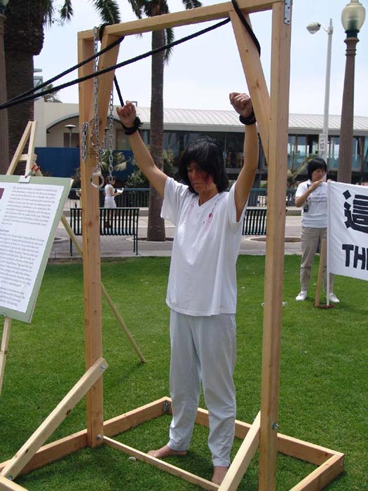 加州大学洛杉矶分校(UCLA)教授、法轮功学员吴英年表示,今天展示的酷刑,只是冰山的一角。在大陆劳教所,对法轮功学员的迫害每天都在進行中,至今已進行了5年。透过层层网路封锁,我们知道的已有996名法轮功学员被迫害致死,其中很多就是死于今天所展示的野蛮酷刑。
