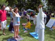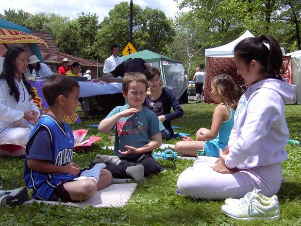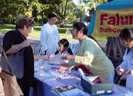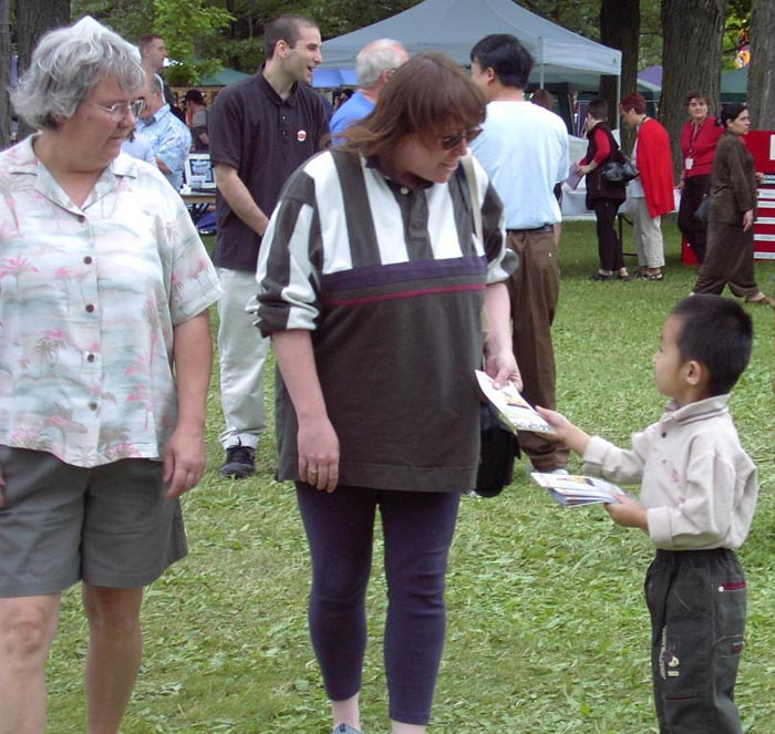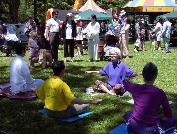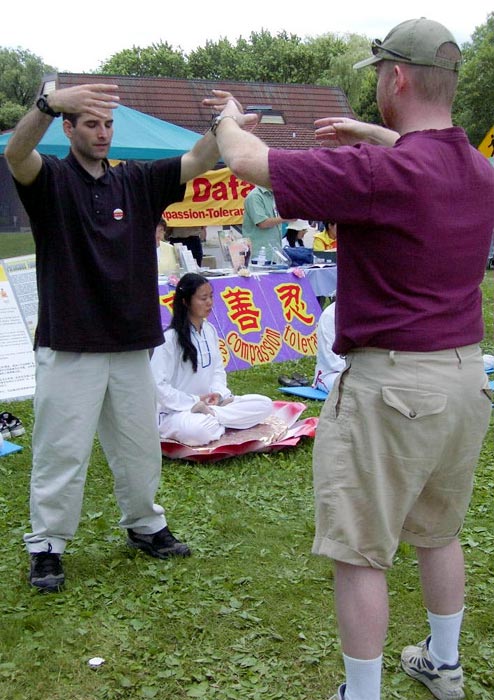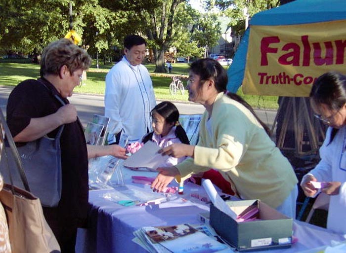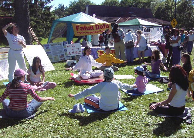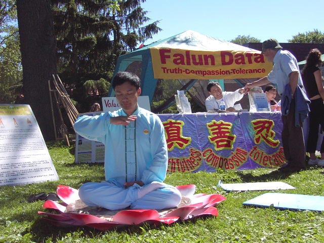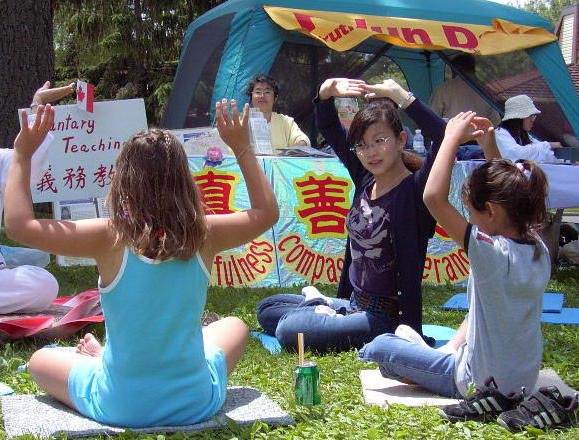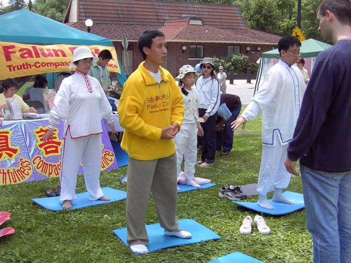 【明慧网2004年6月29日】加拿大法轮功学员参加双城凯琴纳滑铁卢多元文化节,并洪法教功: