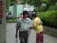 一位中年妇女说:“我是从崎玉县到这附近来拜访朋友路过这里,不然的话,我是不知道真的会在中国发生着这么残忍的事。以前只是听说,但不知道是这样的严重。”她说她是信佛的,希望多了解法轮功的信息,并要了学员的联系地址。学员告诉她可以去书店买日文版的《法轮功》书看,看后若想進一步了解请打电话。她高兴的说:“你们要加油啊!”