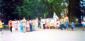 【明慧网2004年6月29日】2004年6月25到26日,俄罗斯五山城法轮功学员在科罗瓦公园举办活动,在“世界反日”之际向民众呼吁关注在中国发生的对法轮功学员的。