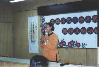 另外,主办学校李素贞校长致词时,也非常肯定法轮大法对教育的价值。她亲眼见到在校内修炼法轮功的教师心性的提升、身体的健康、对小孩子的付出,都是十分显著;她自己也正要走入大法修炼的行列中,成为一位大法的学员;法轮功教师研习营能在他们学校举办,她很高兴。