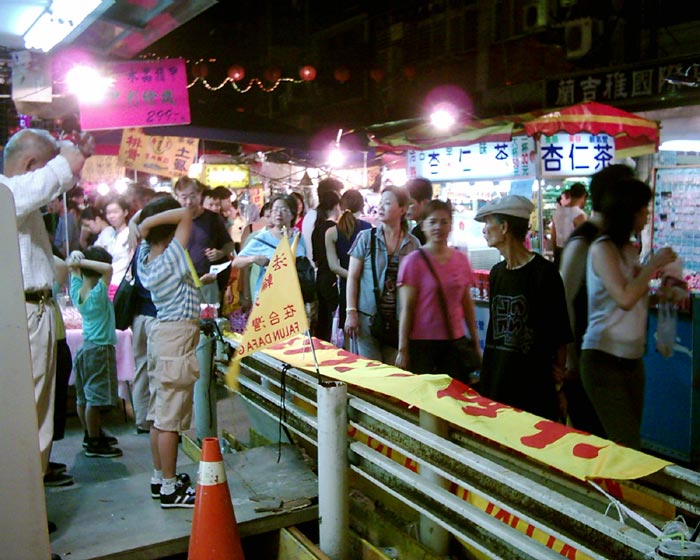 在我们手持“法轮大法好”、“真、善、忍”小三角旗,放着“普度”“济世”的音乐在饶河观光夜市寻找展位时,一位摊位老板洪先生看到即问:“你们是炼法轮功的,法轮功很好,哪里可以学炼?”