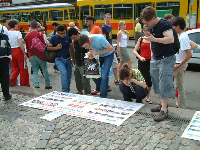 一位来自波兰的姑娘在了解了真象后说她终于明白了,原来法轮功让人有一个自己的是非判断标准,让人有自己的观点,所以才被镇压。她说她可以理解,因为当波兰也被××党统治时,所有的媒体都只报道国内的人民生活得如何幸福,全然不顾与事实相背,也不报道任何资本主义国家中的好的一面。她也曾读过一些关于西藏的书,所以她说我可以想象这次镇压有多么的残忍。最后她希望迫害能早日结束。