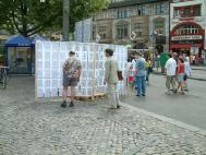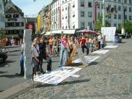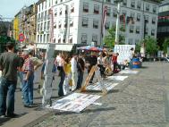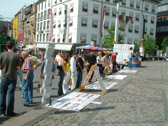 有两位女士,说英文,指着迫害的照片问,这是怎么回事呢?当她们了解到法轮功弟子所受的非人的迫害时,她们感到十分难过,表示了极大的同情。后来,她们问怎么才能帮你们?我们告诉她们,若你们能告诉更多的朋友法轮功真象,让更多的人给以我们道义上的支持,那就是很大的帮助了。她们连声说我们会把法轮功的真象告诉我们的朋友。