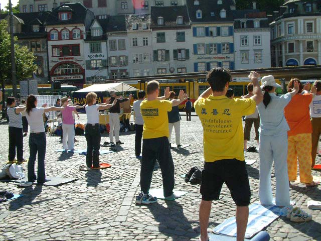 一位中国小姑娘说她已有《转法轮》及讲法的录音带及教功VCD,她也曾试着自己学,但因为不是特别明白,后来也就放下了。今天她偶然出来逛街,就遇到了我们。刚开始她也提出了一些疑问,如自焚究竟是怎么回事,另外觉得我们不要做太过了,等江××完蛋后就会好了等等。针对她的想法,学员们说,其实我们所告诉人们的只是冰山一角,在国内每天上演的悲剧更为残忍。我们的目地不是为了一定要江××怎么怎么样,而是希望更多的人能了解真象。我们还提到,有很多学生也被迫失学,流离失所,作为同是学生的我们,又怎能熟视无睹,不出来为他们说句话呢?我们给了她真象光盘,她还记下了当地炼功点的地址及时间。在离开时,她留下了电话并说,你们今后有什么活动也叫上我吧,我也想参加。下午她又出现在我们的摊位前,她说我想和你们在一起。当看到弟子们在炼功时,她说,我也想和他们一起炼。后来我们教了她5套功法,她连说,嗯,明白多了。她又问了很多问题,期间她说道,真不知道那江到底是怎么回事,本来是很让中国引以为傲的——这么好的功法出自中国,可是它却镇压。后来她一直静静的坐着看我们炼功,发正念,并与很多弟子交谈。在晚上烛光守夜的时候,虽然她还不知道什么是发正念,但她也和大家一起盘腿坐着。后来,她拿起了报纸,开始给路人发材料。当有人问起图片背后的故事时,她就请来老学员讲解,而她也在旁边静静的听着。我们可以感受到她的变化,后来她问起师父生日的问题时,她说,他们说的李洪志先生,哦,是师父,改生日[的歪曲报道]是不是也是假的?在了解了事实后,她连连点头。一直到晚上9点多她才准备回家,离回家前她说,今天可真是有缘,让我遇到了你们。是啊,真好,多谢师父又让一个有缘人找到了回家的路。
